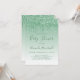 This trendy baby shower invitation features a border of sparkly dripping green faux glitter on a green ombre background. The words "Baby Shower" and the name of the mum-to-be appear in dark green handwriting script, with the remaining text in sans serif font.