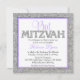 Glam Faux Glitter Silver Lavender Bat Mitzvah Invitation