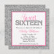 Glam Faux Glitter Silver Pink Sweet 16 Invitation