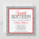 Glam Faux Glitter Silver Red Sweet 16 Invitation