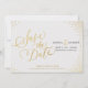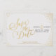 Glamour faux gold glitter hand lettering calligraphy save the date design and gold dots confetti on off white background, pretty shimmer faux metallic gold glitter effect, modern, chic, elegant and classy, perfect for vintage wedding, art deco wedding or winter wedding. Editable background colour to match your wedding theme colours. Custom your own save the date card for your wedding invitation set.