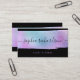 These elegant business cards feature a glam, faux holographic brush stroke on a dark black background. Your name appears in trendy handwritten script typography. There is also room to include your social media information on the back.