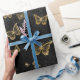 Glam black and gold butterflies in a seamless pattern. Modern luxury design with white sparkles.