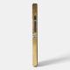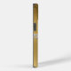 Glam gold tone iPhone case, with graphics of a gold damask pattern, across the top and a gold foil look, across the bottom, of the case. Faux diamond strands run across the middle of the case and is topped off with a black and gold square monogram plaque. Personalise the one letter monogram to suit your needs.