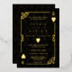 Unique Casino Royale, REAL GOLD FOIL card design. It features vintage art deco style, a Roaring 1920's old Hollywood broken frame with faux gold foil Fleur-de-lis, hearts, Q and K on two corners (simulating playing cards), on gold black Art Deco pattern background. Special wording are used as in poker game. On the back faux gold Art Deco pattern and initials between playing cards suits. Use Personalise tool to add your information. For more, visit please, my Casino Collection.