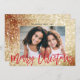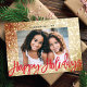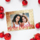Glam Gold Glitter Red Script Christmas Photo Holiday Card