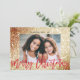 This modern yet elegant holiday photo card features a single horizontal photo over a gorgeous gold glitter image background, and a greeting in red script which says "Merry Christmas". This design accommodates a single horizontal photo on the front. The back of the card is the same glitter image, but can be removed if desired. You can also add another photo to the back and/or additional text. You can customise this design further by clicking "customise it further" in the personalisation dropdown menu.