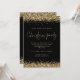 Glam Gold Glitter Script Christmas Party Black. Classy black and gold sparkly style for your Holiday party with gold faux glitter bordering the top and bottom edges on both sides and in a set handwriting style script for the occasion typography. Easily personalise the rest of the text to your own details.