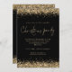Glam Gold Glitter Script Christmas Party Black Invitation