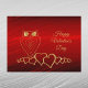 Gold owl with heart body sitting on top of heart branch on a red background.