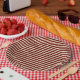 Glam Gold Red Holiday Stripes Christmas Paper Plate