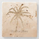 Glam Gold Tropical Palm Tree Ombre Stone Coaster