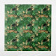 Elegant gold Tiger and a lady in a green tiger print dress with green and gold tropical leaves.