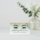 This glamorous modern business card features a sketch of two eyes with elegantly arched eyebrows in black on a background image of green and gold marble. A sprinkling of gold faux glitter decorates the top edge of the card. Personalize it with your name in black handwriting-style script and title and contact information in black sans serif font.