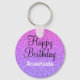 Glam Happy Birthday Ombre Purple Glitter Sparkles Key Ring