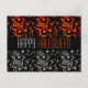This customisable Halloween postcard features glam pebbled orange and black and white strips against a black background.