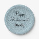 Glam Happy Retirement Blue Silver Glitter Sparkles Paper Plate