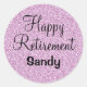 Glam Happy Retirement Purple Glitter Sparkle Classic Round Sticker