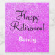 Personalised glam Happy Retirement wine label with a purple glitter sparkle background and black and white writing. You can easily add the name of your choice and change the colour and font of the name using the customise option!