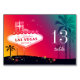 Colourful and pretty illustration of the famous Las Vegas sign + tropical palm tree silhouettes + glittery stars + orange, hot pink, purple and turquoise background illustrated on custom Wedding Table Number Cards. (**Customise the flat card one by one, and put them separately in your cart. You must not expect the automatic numbering without your customisation.**) Sassy party essentials for your Las Vegas wedding, bridal shower, engagement, anniversary party, bachelorette party, birthday party or retirement party. ((You can find the matching wedding essentials & favours in this store, Bridal Heaven. Contact ujean4791@gmail.com for custom work and/or coordinating wedding stationery.))