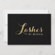 Coordinates with the Glam Lashes Script Text Gold/Black Business Card Template by 1201AM. A glamourous, cursive font spells "Lashes" in faux gold on this customisable gift certificate template. Add your name or business name underneath for a personalised logo. Designed for eyelash extension salons, lash technicians, makeup artists and more. © 1201AM CREATIVE