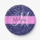 Glam Navy Blue Pink Glitter Sparkles Name Monogram Paper Plate