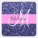 Glam Navy Blue Pink Glitter Sparkles Name Monogram Square Sticker