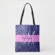 Glam Navy Blue Pink Glitter Sparkles Name Monogram Tote Bag