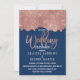 Glam Navy Rose Gold Glitter Colour Block Wedding Invitation