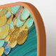 This unique pickleball paddle features a background of faux gold, shades of aqua and teal, in an ocean swirl water pattern. Add a trio of initials to personalise it. Makes a great gift for bridesmaid, mum, daughter, sister, or anyone in the family who loves pickleball. Created by Simply Farmhouse Press.