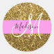 Glam Pink and Gold Glitter Sparkles Monogram Name Classic Round Sticker