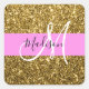 Glam Pink and Gold Glitter Sparkles Monogram Name Square Sticker