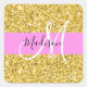 Glam Pink and Gold Glitter Sparkles Monogram Name Square Sticker