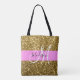 Glam Pink and Gold Glitter Sparkles Monogram Name Tote Bag