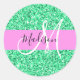 Glam Pink and Green Glitter Sparkles Monogram Name Classic Round Sticker