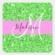 Glam Pink and Green Glitter Sparkles Monogram Name Square Sticker