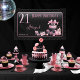 Glamourous French couture-inspired, pink and black "21" 21st birthday design featuring a hat box cake, pink stilettos and a makeup bag among various unopened birthday presents and luscious cupcakes. Perfect for celebrating birthday occasions. Age is created in an uneditable faux pink glitter font.