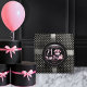 Glamourous French couture-inspired, pink and black "21" 21st birthday design featuring a hat box cake, pink stilettos and a makeup bag among various unopened birthday presents and luscious cupcakes. Perfect for celebrating birthday occasions. Age is created in an uneditable faux pink glitter font.