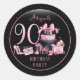 Glam Pink Black Fashion 90th Birthday Party Classic Round Sticker