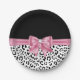 Glam Pink Bow Diamond Black Snow Leopard Paper Plate