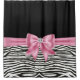 Glam Pink Bow Diamond Zebra Print Black Shower Curtain