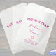 These simple yet chic pink glam Bat Mitzvah party favour bags are easy to personalise. Three sets of dark rose pink lettering can all be customised, from the curved BAT MITZVAH at the top to space for your daughter's name in a stylised script font to the smaller simple font at the bottom with a thank you message. A faux pink glitter Star Of David finishes off these custom Bat Mitzvah favour bags, perfect for treats and party favours.
