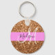 Glam Pink & Copper Glitter Sparkles Monogram Name Key Ring