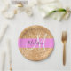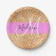 Glam Pink & Copper Glitter Sparkles Monogram Name Paper Plate
