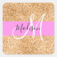 Glam Pink & Copper Glitter Sparkles Monogram Name Square Sticker
