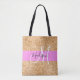Glam and girly pink and copper glitter sparkles white monogram name and initial tote bag. Your custom name and monogram are written in an elegant hand lettered script with a pink background. You can change the text colour and font style and size using the customise option. A perfect birthday or Christmas gift!