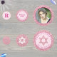 Dress up your Bat Mitzvah party tables with this personalised table confetti in pink glam with faux glitter images - the feel of sparkle without the mess! This table confetti includes a place for your daughter's photo, two pieces with text to personalise and a small round for a monogram letter. Easy to personalise, this light pink and pink faux glitter Bat Mitzvah table confetti is another way to add a truly custom feel to your party décor.