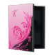 Elegant iPad 2/3/4 folio style case done in light gradient pink, with graphics of a hot pink flourish, across the bottom, and black, in the corners. Personalise the pink one letter monogram. Lovely way to protect your electronic device and look stylish too.