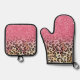 Glam Pink Glitter Leopard Pattern Oven Mitt & Pot Holder Set