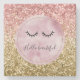 Glam Pink Gold Glitter Black Eyelashes Stone Coaster